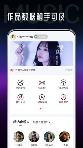 4.为音乐人提供发行代理和音乐制作方面的一系列便捷服务,让好的音乐更多的出现在大众的视野中。