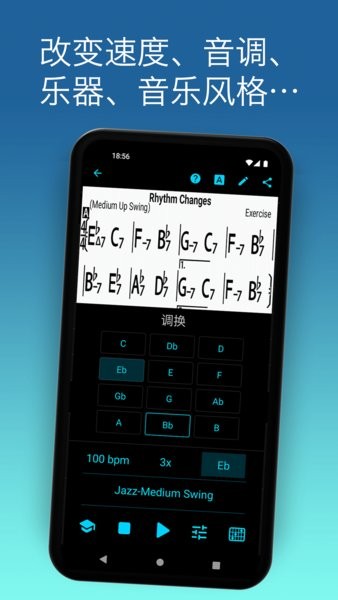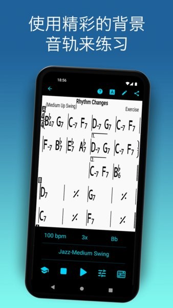 从包含的47种不同伴奏风格(Swing,Ballad,Gypsy Jazz,Bluegrass,Country,Rock,Funk,Reggae,Bossa Nova,Latin ...)和12张蓝调风格可作为一次性应用内购买