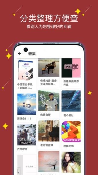 享悦谱手机版是一款提供音乐曲谱的应用软件,海量优质曲谱随心选择,古典、动漫、国风、影视、儿童等类型一应俱全,喜欢的一键加入收藏,方便查找,还可以分类整理,在线查看热门曲目,随时弹奏练习,操作简单又方便,适合音乐爱好者们使用!