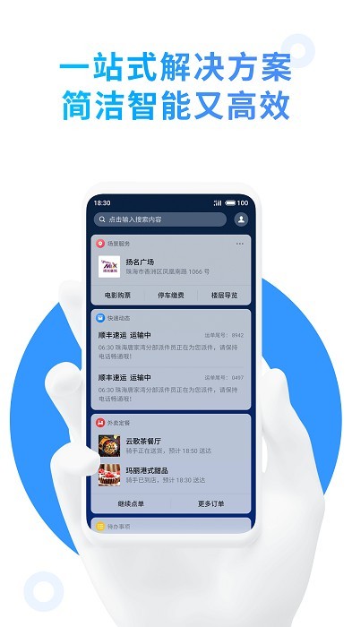 Aicy 纵览涵盖了应用建议、快捷功能、实时天气、场景服务、近期日程、待办事项、快递动态、还款缴费、我的票券、通勤耗时、停车标记等在生活中经常使用的功能,为你的生活提供一站式解决方案,智能又省心。