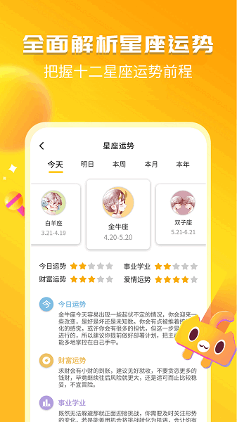 3、全面解析星座运势,全部的运势前程都能汇总出来。
