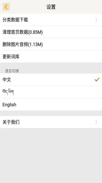 2、功能丰富的图解词典应用,支持语言切换,及时更新词库内容,轻松学习藏族语言