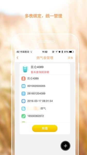 多表管理,无论您有几个燃气表,都可以进行统一管理,一键绑定,随时随地了解燃气所有信息。