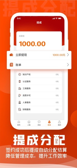 1、提成分配:这里面有专业的智能智能化分配结算,降低的了成本,提升工作效率