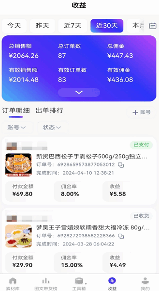 具备了海量优质素材能够为用户带货创作提供充足的素材资源;