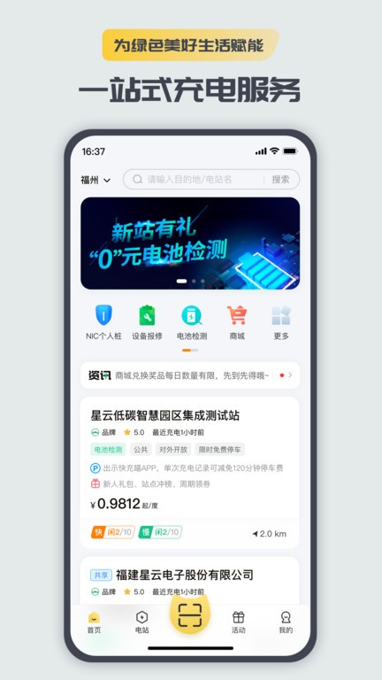 查看充电站点信息和电桩实时状态。