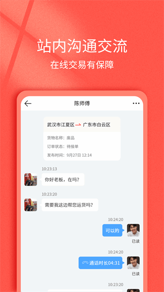3、运费在线支付,通过线上支付的方式可以与司机进行线上化的运货交易。