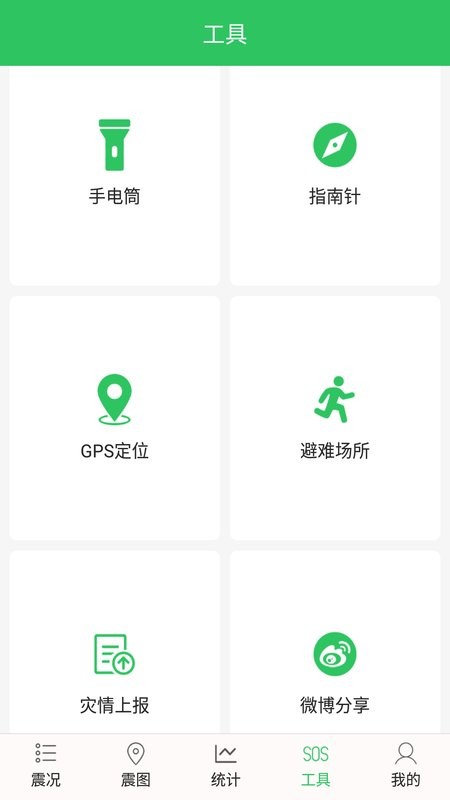 包含手电筒、指南针、gps定位、查找避难场所等实用小工具。