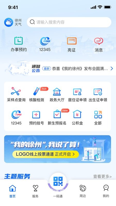 我的徐州最新版是一款徐州本地的生活便民服务平台,面向当地市民群众,覆盖生活的方方面面,提供采样点查询、核酸检测、政务大厅、居住证申领、出生证申领、12345、预约挂号、公积金等功能服务,还支持周边查询,扫码认证,接收实时消息通知,便利大家日常生活!