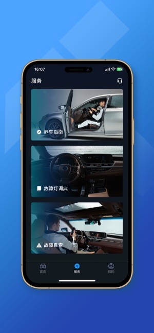 用户可进入到服务中心来获取到更多的车辆服务功能,可选择需要的服务功能来进行使用操作。