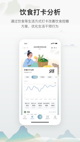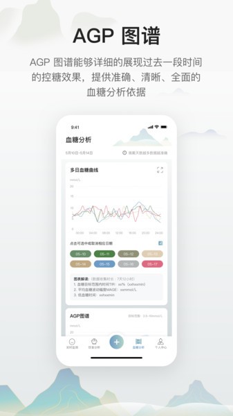 -- 通过直观的数据展示方式,展示用户的控糖效果,清晰地了解自己的血糖状态,进而进行相应的调整和改善。