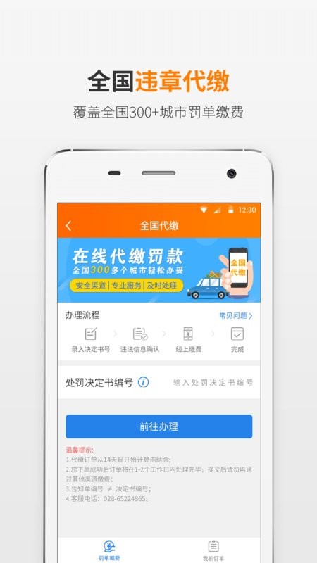覆盖全国300+城市的违章罚单代缴业务,安全、方便、快捷便利!