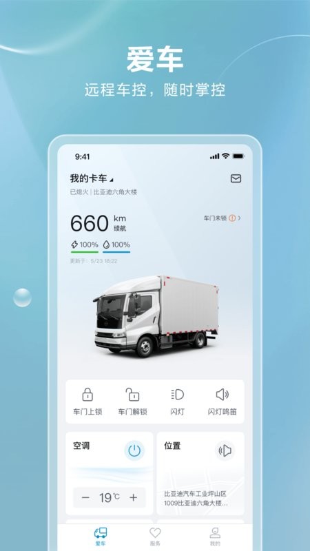 比亚迪卡车官方版是比亚迪汽车旗下专为卡车车主朋友打造设计的汽服出行软件,可以随时了解车辆状况,定位导航出行,一键远程控车,灵活掌控,开启空调等,还支持网点查询、电桩查询、道路救援等服务,用车出行更加方便高效,省心无忧!