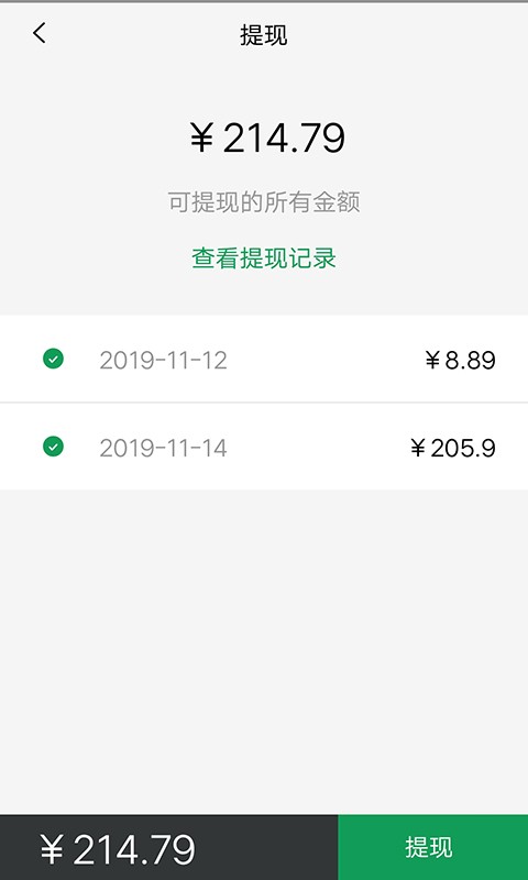 5、轻松提现,一键把商家的收益提现出来,提现记录同步保存,便于核对账单。