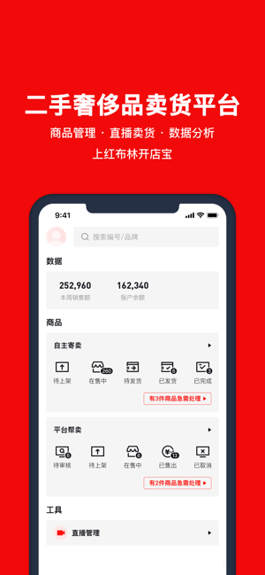 红布林开店宝是为二手奢侈品商户量身打造的管货、卖货平台。