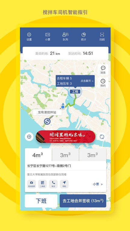 我挺喜欢这个app的高效沟通功能,当接到小票时自动加入工地群聊,方便司机随时了解工地情况。还有语音对讲功能,开车时收到消息可以直接对讲,省去了不少麻烦。排队系统也很方便,司机进入范围后自动排队,还能暂离或退出队列。