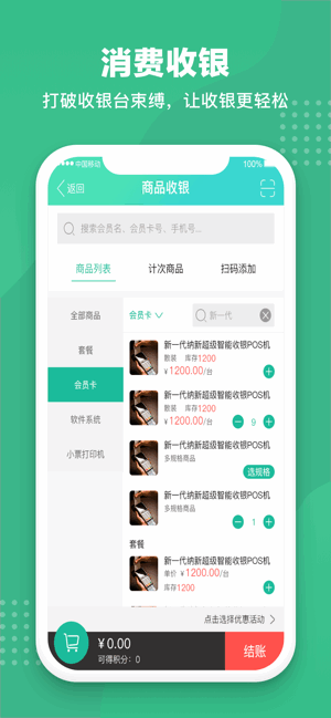 商户收银宝是一款客户端会员管理系统,适用于绝大部分安卓手机。支持无线网络会员管理,会员充值,会员消费等功能,与PC端无缝对接,数据实时同步,随时随地,即登录即享用。具有占地空间小,可移动性强,成本低廉等特点。