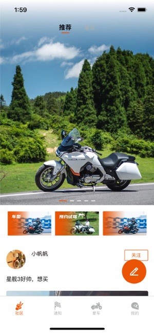 5、支持用户创建个人主页,展示自己的机车收藏和经历,与其他用户互动。