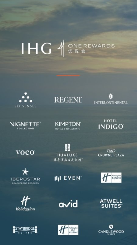 预订以下酒店品牌系列并赚取奖励:假日酒店、智选假日酒店、Holiday Inn Club Vacations、假日度假酒店、洲际?酒店及度假村、六善酒店、度假村及水疗中心、丽晶酒店及度假村、金普顿酒店及餐厅、voco、英迪格酒店、逸衡酒店、华邑酒店及度假村、皇冠假日酒店及度假村、avid、Staybridge Suites、Atwell Suites以及 Candlewood Suites。