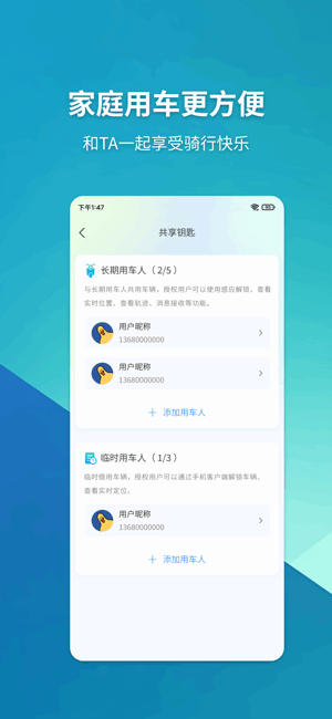 【钥匙共享】将手机控车功能分享给家人朋友共同用车人。--多人用车很方便。