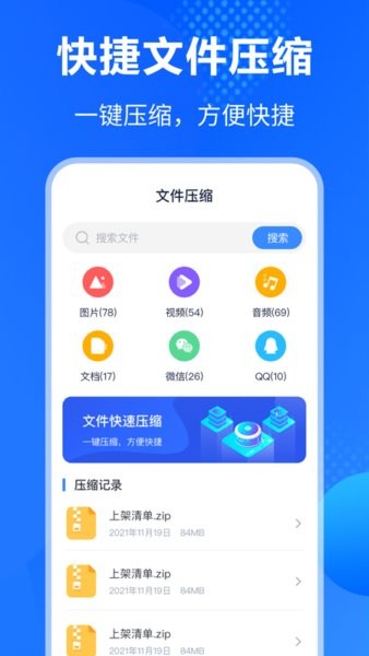 专业的rar,zip等多种压缩格式的解压与压缩文件管理工具。更是可以对多种文件进行解压与解压缩,图片压缩,视频压缩,文件查看器等等都是rar解压缩软件所含有的功能。