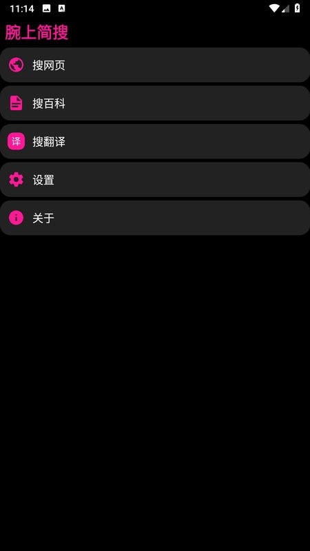 腕上简搜最新版是适用于智能手表的搜索工具,界面高清清爽,功能强大,支持搜网页、搜百科、搜翻译,还内置必应、百度引擎选择,可以随你自由设置,在线搜索访问,轻松浏览,操作便捷,反应迅速,好用又实用,有需要的伙伴快来体验吧!