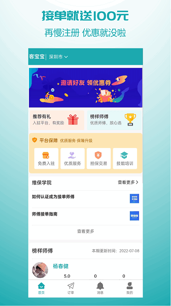 客宝宝师傅版,专为维修师傅打造的接单软件,师傅们可便捷在线参与订单报价,为客户提供售后维修服务,软件实时更新最新的客户订单信息,师傅们可根据自身工作实际挑选相应的工单提供服务,有需要的用户可以下载使用!