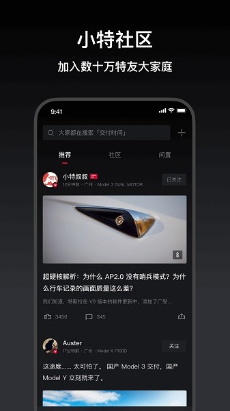 小特是一款专为特斯拉车主设计的生活类应用,它能帮助你更方便地控制车辆、查找充电桩并规划充电路线。通过完成配对,你可以用手机启动车辆、开关空调等,实时查看车况信息。软件内置地图功能,显示附近所有充电桩的位置,并支持语音导航,找到最近的充电桩或加油站。小特还提供共享充电桩服务,车主可以将自己的充电桩分享给其他人使用,方便更多人充电。