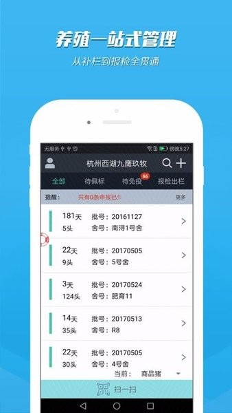我觉得这个App特别适合规模养殖和散户使用,因为它把从补栏到报检的流程都整合在一起了。比如一边给畜生佩标一边做记录,还能实时保存进度,非常高效。还有扫一扫功能随时可用,扫耳标就能读取信息,省去了不少麻烦。提醒事项管理也很实用,能及时处理待办任务,避免遗漏。