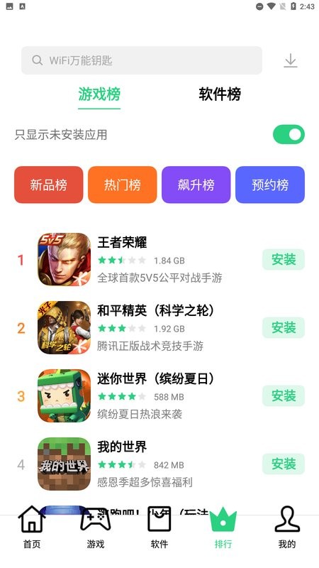 人气排行:根据下载排行推荐给你最热门最新鲜的应用和游戏。