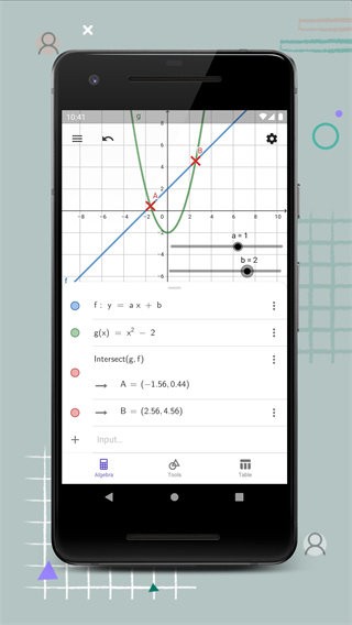 图形计算器geogebra手机版app是一款数学教学类的应用软件,界面简约干净,功能丰富,拥有多样的数学公式计算内容,提供函数、导数、坐标曲线、解方程知识内容方便大家在线学习研究和绘制,是大家学习数学的一大帮手,满足不同人的需要!