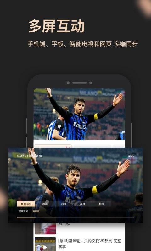央视体育VIP 同时支持手机端、平板电脑、智能电视盒子和网页端,并且支持多端同步会员信息和赛事内容,真正实现了赛事多终端同步