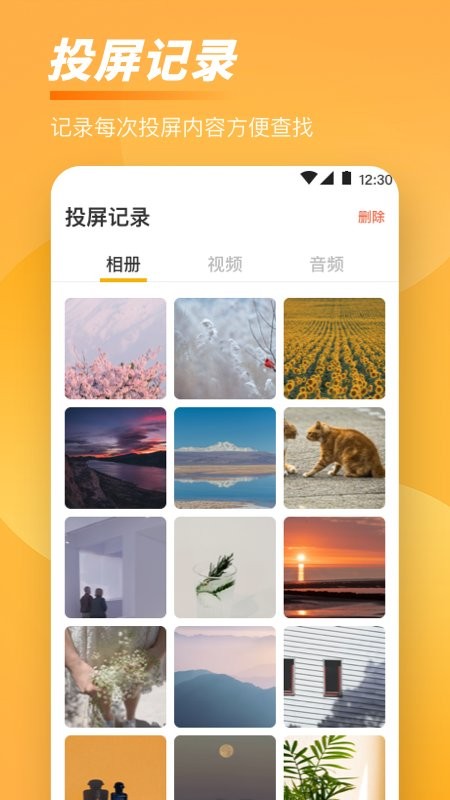 让您轻松投影手机本地视频、音乐和图片到电视机的大屏幕上,画质清晰,播放稳定无延迟,便捷实用的投屏软件,自动搜索可投影的电视设备,投屏tv。