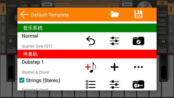 17、设置当前设置:乐器、节奏、系统(QT)等。