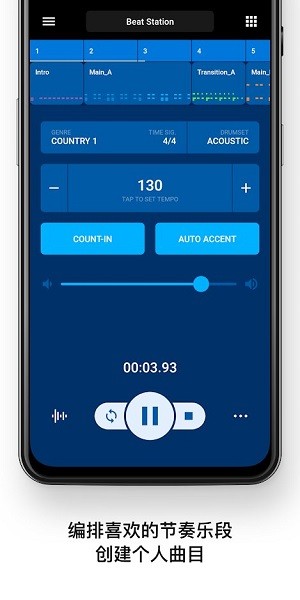beatstation专业鼓机节拍器是非常专业的鼓机,帮助用户更加方便的练习乐器,通过软件用户可以随时在手机之中找到完整的乐曲,还可以帮助用户随时为自己的乐器进行调音。