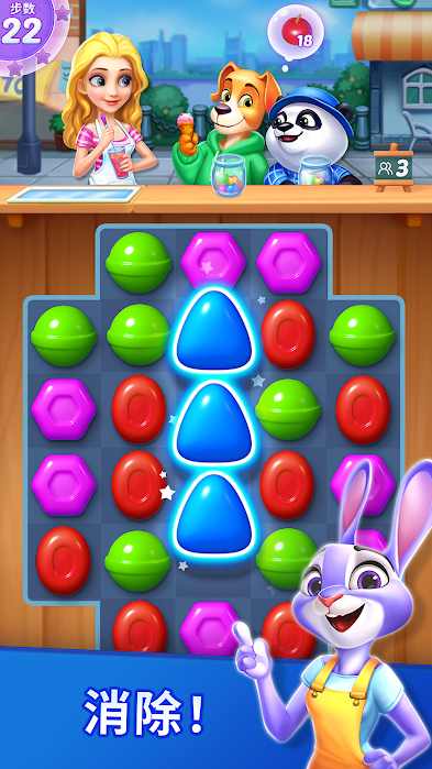 开始冒险旅程:体验三消的乐趣,经营糖果小店,服务丰富的顾客,解锁丰富的糖果,探索充满惊喜的世界。