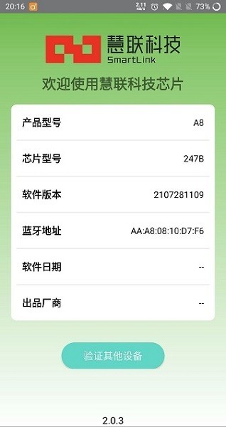 检测慧联A8,需要安装 2.0.3 版本APP才可以检测