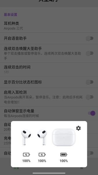 大圣助手是一款专门针对AirPods的神器应用,不仅支持最新的AirPods 3,还能检测是否为正品,避免买到假货。它的功能非常强大,比如查看电量、入耳检测、自动暂停播放音乐、激活语音助手等等。通过它,你可以用语音控制音乐播放、打电话、听微信通知、导航甚至收藏文章并转化为音频播放。