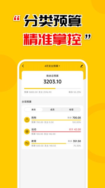 4、分类预算满足各类需求,超支提示控制支出;