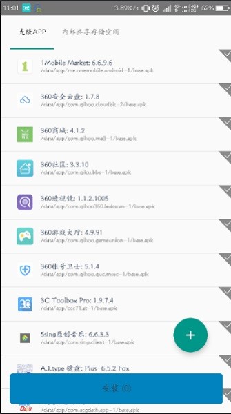 点击右边的浮动按钮,从第三方文件选择器选择安装