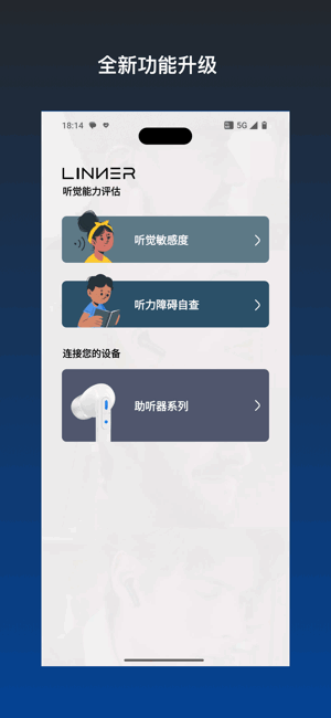 另外,app还会实时显示设备状态,比如电量和连接情况,这点很实用。新增的听觉敏感度功能和听力障碍自查功能也让它更专业,对有需要的人来说是个大福利。总的来说,这是一款功能全面又贴心的助听器管理工具,值得推荐!