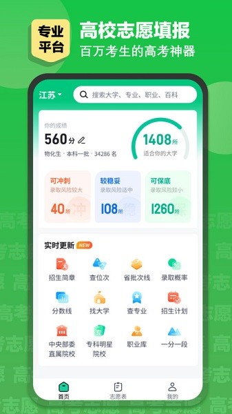 高考志愿填报工具依托全量招生录取数据、大学和专业特征数据,利用智能算法和机器学习精准定位院校和专业,规避掉档风险,发挥分数更大价值!