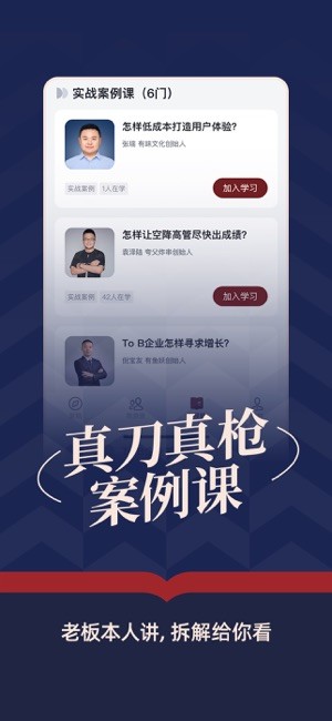 2、创业路上,您有时困惑,希望有高人能出主意给高招,“得到新商学”有100门实战案例课,都是那些打过胜仗的老板亲自讲。