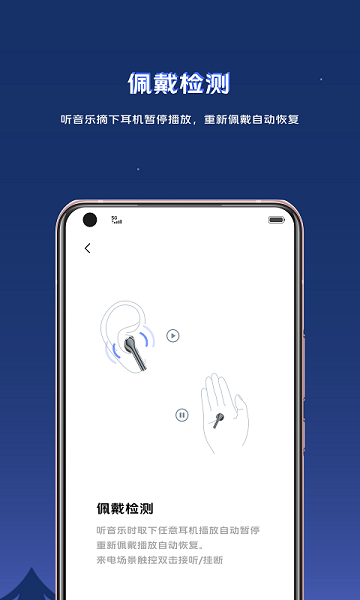 vivo耳机应用是用于vivo耳机固件升级及管理的服务软件,可以快速连接耳机、手势操作、控制音量、来电接听、佩戴检测等功能,帮助用户检查更新耳机固件等。