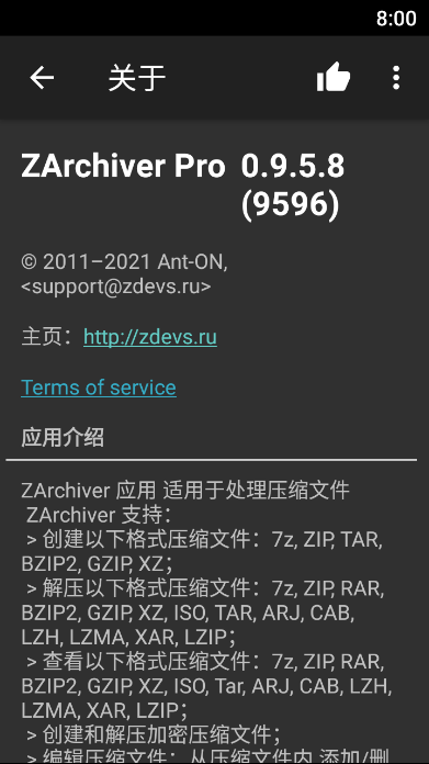 强大的压缩和解压缩软件,支持rar,zip,7z等等,不像androidzip一样解压7z错误,还支持带密码的rar压缩文件,支持中文文件名,(这是安卓上唯一的),支持rar,zip,7z的解压,还支持带密码的解压缩文件,还支持分卷解压,速度和成功率绝对强于其他解压缩软件。