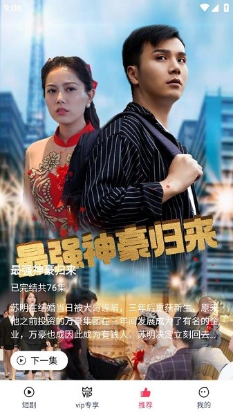 2、涵盖了悬疑、喜剧、爱情等多个题材,还有重生、逆袭、复仇、古风等多种类型的短剧,为用户提供丰富多彩的观影选择。
