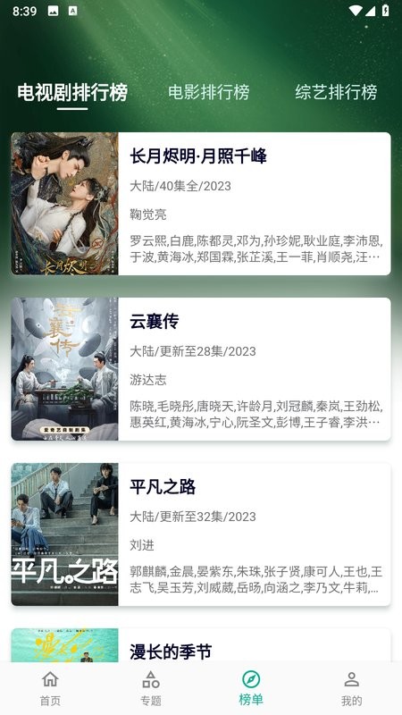 -- 看每日、每周以及每月的影视排行榜,再也不必纠结什么剧好看。