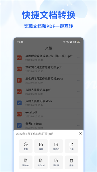 word文档表格编辑支持pdf转word、pdf转excel、pdf转ppt、word转pdf、excel转pdf、ppt转pdf等格式互转,支持将pdf、word、excel、ppt等文档一键分享微信、qq、电脑等等。