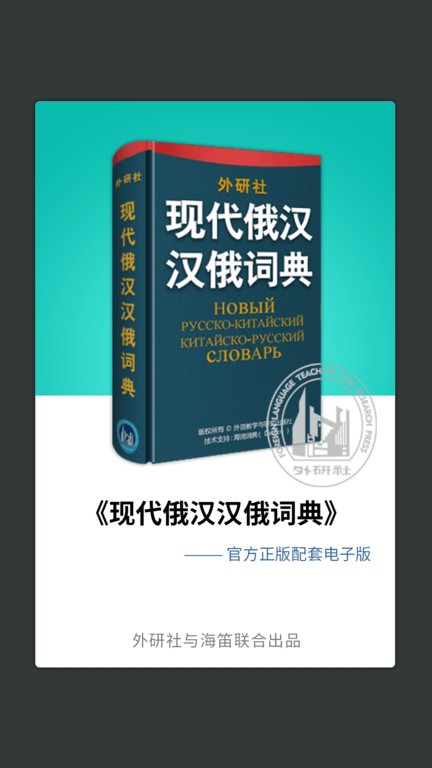 外研社精品畅销词典,俄语学习者必备词典。《外研社现代俄汉词典》于1998年10月初版 发行,2012年12月第14次印刷,《外研社现代汉俄词典》于2002年8月初版发行, 2010年5月第8次印刷,手机版综合两本词典内容与最 新印刷版保持同步,是俄语单词查询的便捷工具,也是俄语阅读、俄语写作、翻译查询的得力助手,词典共收俄汉汉俄词九万余条,除基本词汇外,还收录了近年来社会政治、经济、外贸、法律、科学、技术、文化生活等各方面的新词汇和术语。海笛科技携手外研社官方权威正版发布,具有语音查词、通知栏快捷查词等便捷查词功能,还有俄语/汉语词条均可真人发音、俄语例句发音、生词收藏和复习等辅助学习功能。选择正版词典,学习更有保障!