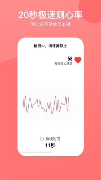 使用闪光灯外加智能心律算法,从摄像头中获取手指掌上毛细血管脉动,心率随时测量心率脉搏,静坐心率、运动后心率、加班、关怀、起床、睡前心电图,检测心率心电图波形图,心率心电图更加班自己家人健康。